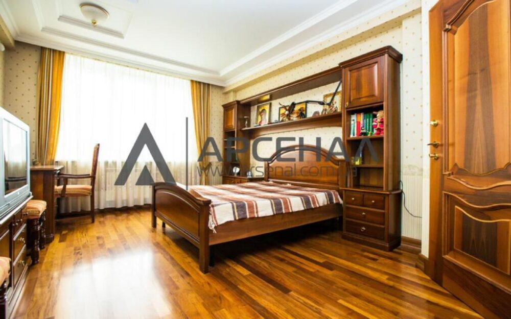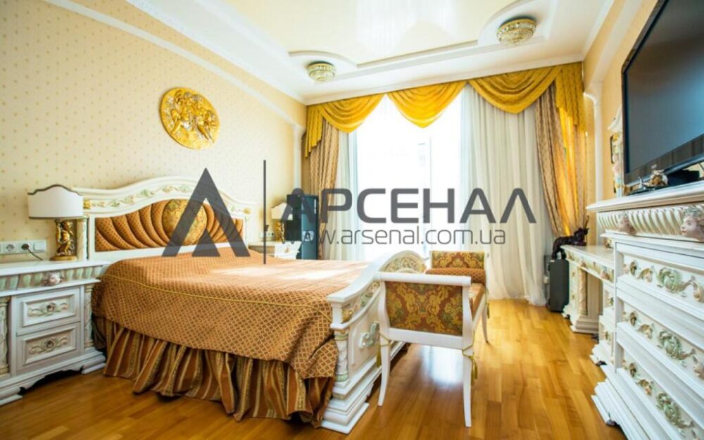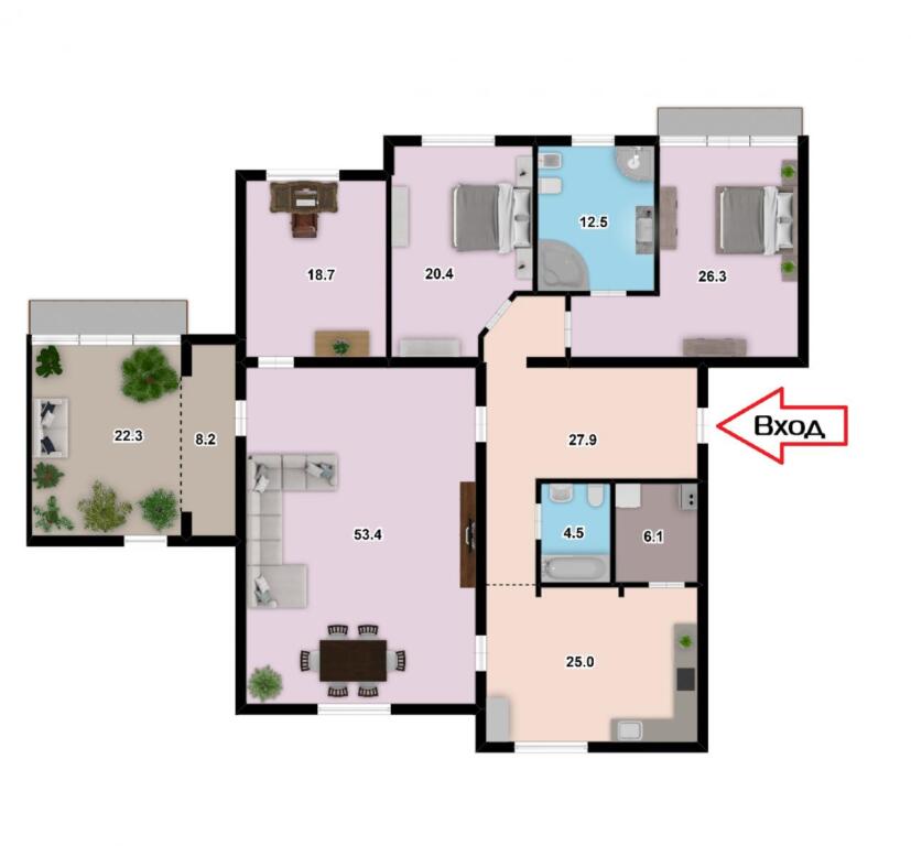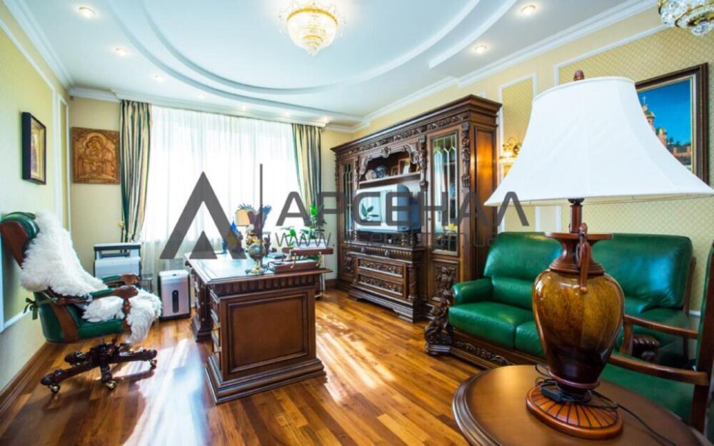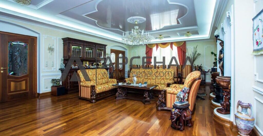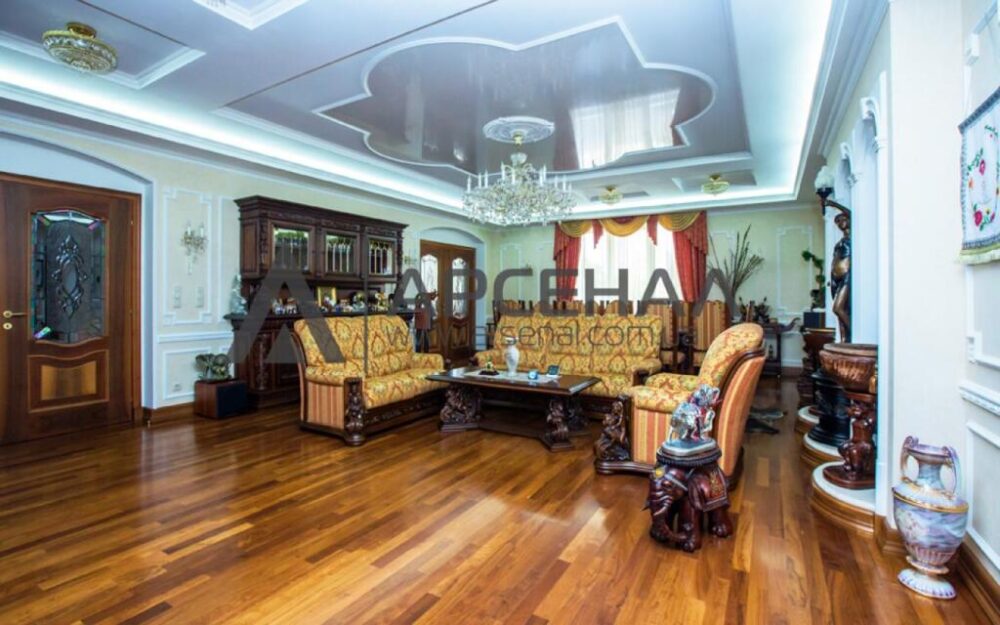 В квартире 5 просторных комнат, кухня и два санузла. В одной из комнат находится зимний сад. Общая площадь 226 м.кв., жилая – 141,1 кв.м., кухня – 25 м.кв.