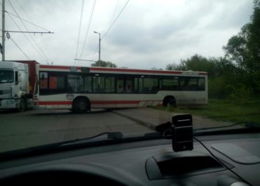 Вчера, 1 октября, около 18:00 на Зеленом Яру водитель 56 автобуса и женщина-водитель легковушки не смогли поделить дорогу.