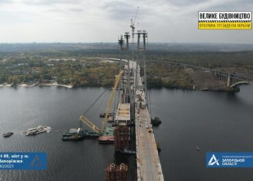 В Запорожье мостостроители смонтировали первую секцию пролетного строения низовой части вантового моста.