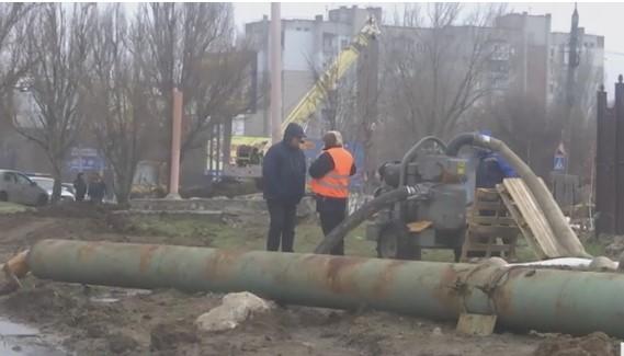 На месте работ дежурят директор Водоканала, заместитель городского головы Георгий Горячев, секретарь городского совета Алексей Холод.