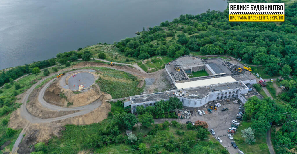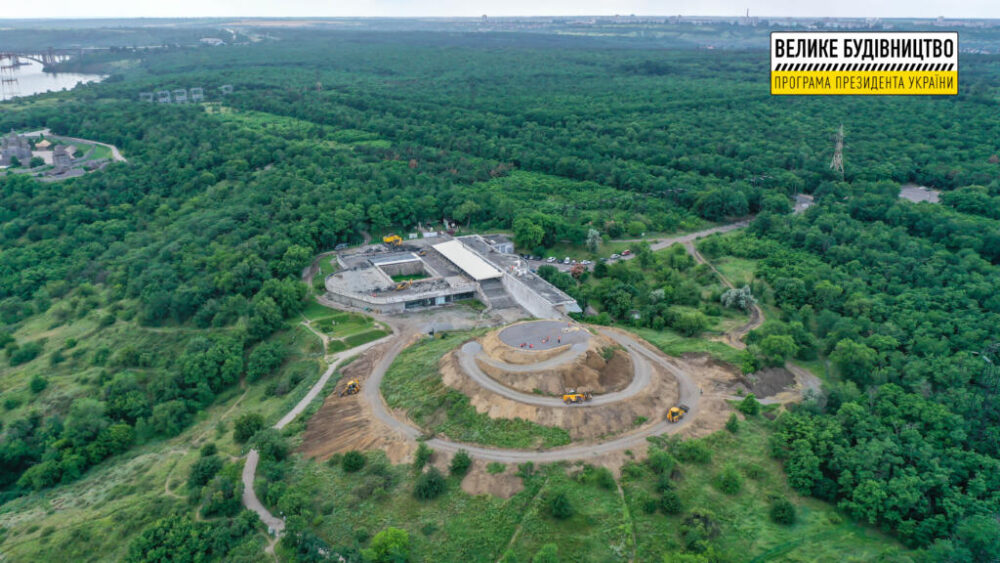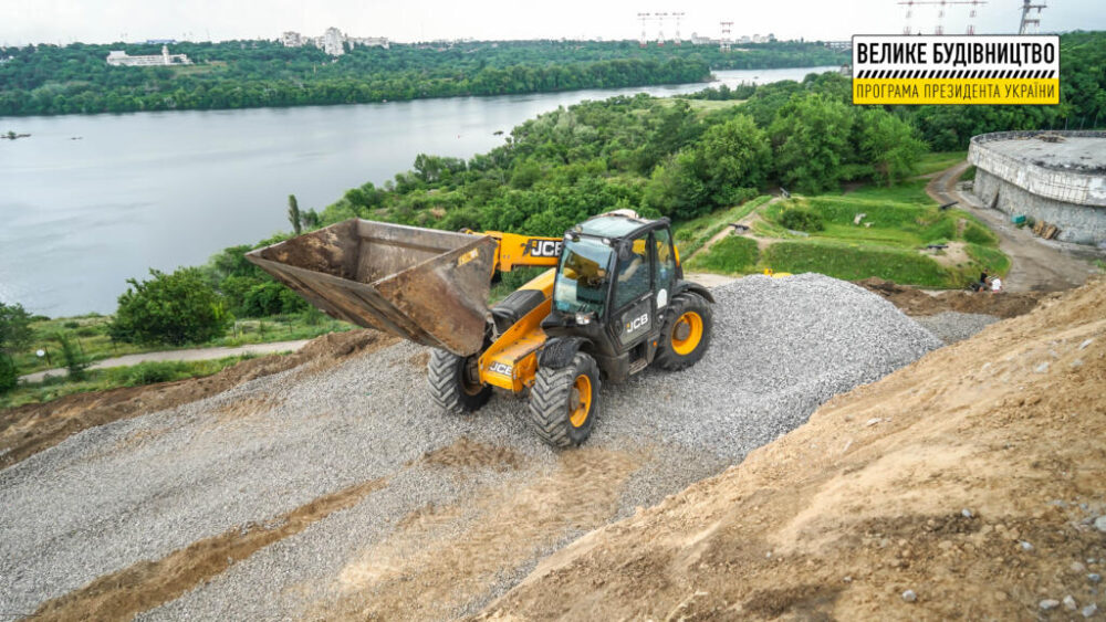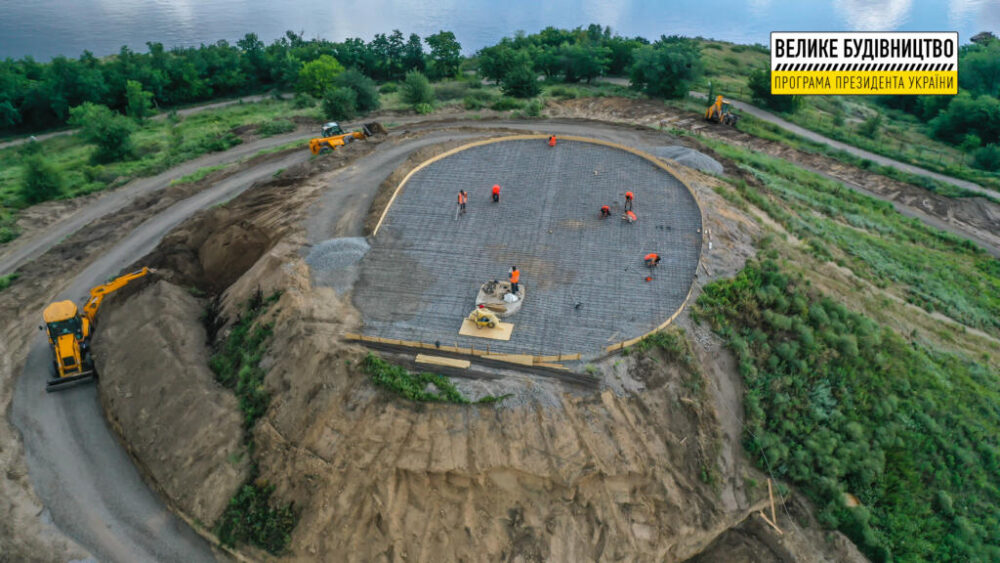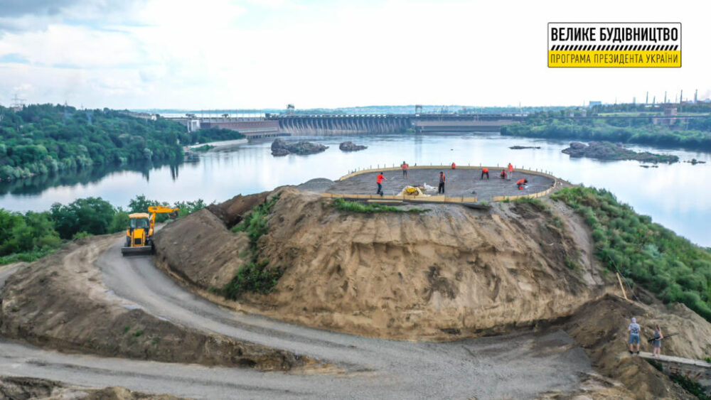 В Запорожье на острове Хортица продолжаются работы по обустройству площадки для установки большого флага Украины.