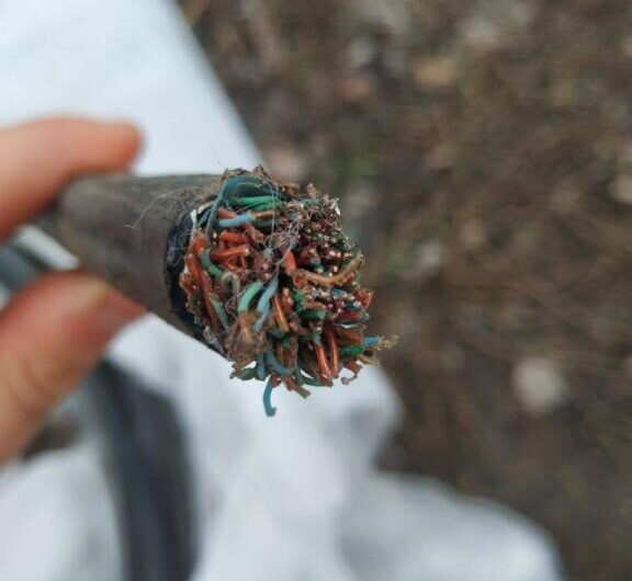 Остановив гражданина выяснилось, что он украл кабельную продукцию, которая принадлежит предприятию расположенному неподалеку. На место прибыла представительница заведения и указала места, где были срезаны кабели.