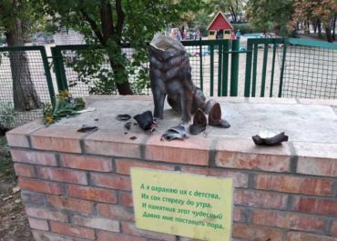 Сегодня утром жители города заметили, что всеми любимый памятник со щенком в сквере Тищенко в очередной раз подвергся набегу вандалов.