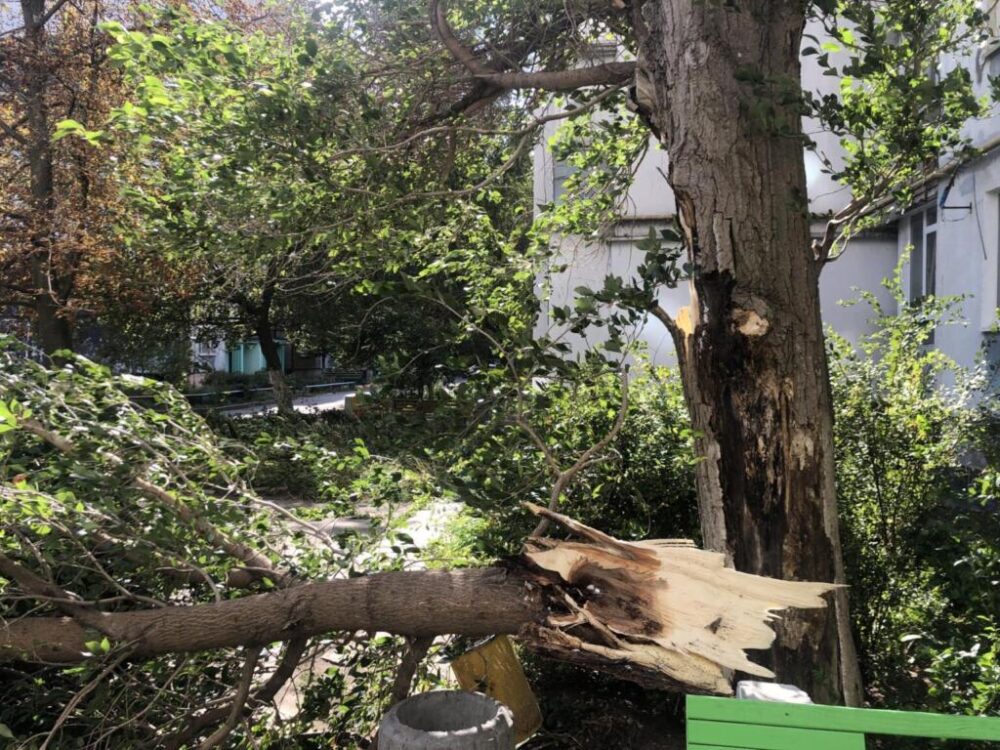 О происшествии сообщили руководству КП «Зеленхоз» и в ближайшее время, будет убрано аварийное дерево.
