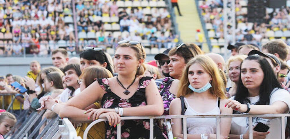 Да, организаторы попытались охватить все возрастные категории выбором артистов. Софию Ротару запорожцы (даже совсем юные) встречали бурными аплодисментами. А один из металлургов пришел даже с портретом певицы. В сети уже вирусным стало видео, где после концерта люди в транспорте пели «Червону руту». Тепло встречали и проект Потапа – группу «Мозги». Она особенно дорога запорожцам в том числе из-за того, что «главный голос» здесь – Дядя Вадя (Вадим Федоров), выходец из Запорожья. Но не обошли зрители вниманием и других исполнителей: у сцены девушки держали плакат с призывом к Позитиву взять их замуж. Словом, было зажигательно, весело и запоминающееся. Но, как вы понимаете, о противоковидных мероприятиях речи не было совсем.