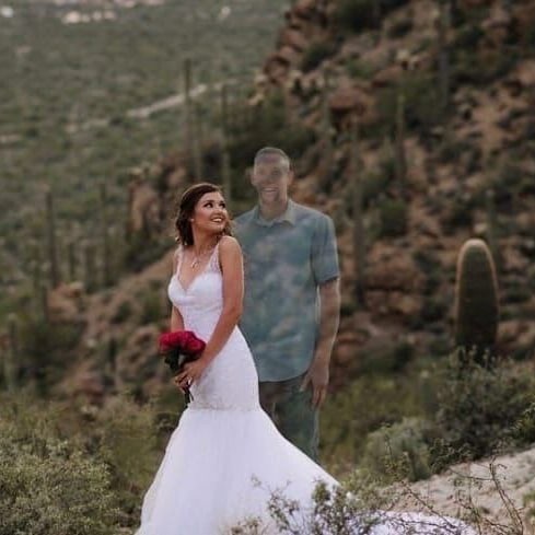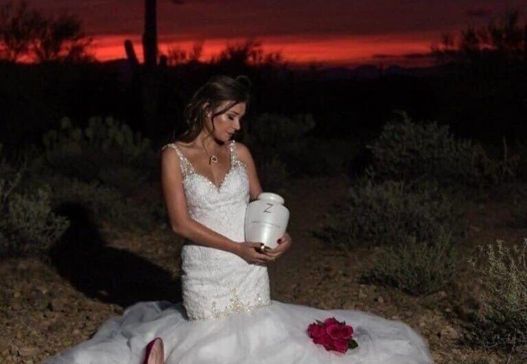 Девушка родом из американского города Тусон, штат Аризона. Она решила устроить свадебную фотосессию без жениха. Дебби таким образом почтила память о возлюбленном.
