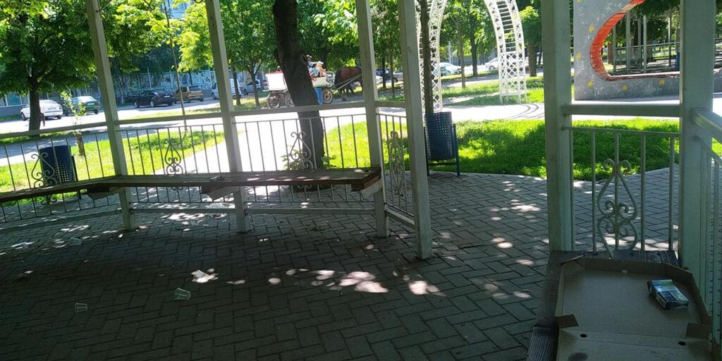 Две беседки находятся сразу напротив Коммунарского ЗАГСа, а вокруг сразу несколько мусорных контейнеров, ведь именно в этом месте запорожцы отмечают свадьбы и не только. О беспорядках рассказала в социальной сети горожанка Lela Nizharadze.