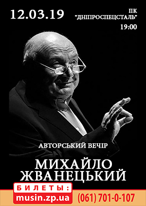 12 марта в ДК «Днепроспецсталь» выступит легендарный Михаил Жванецкий. Начало авторского вечера в 19.00.
