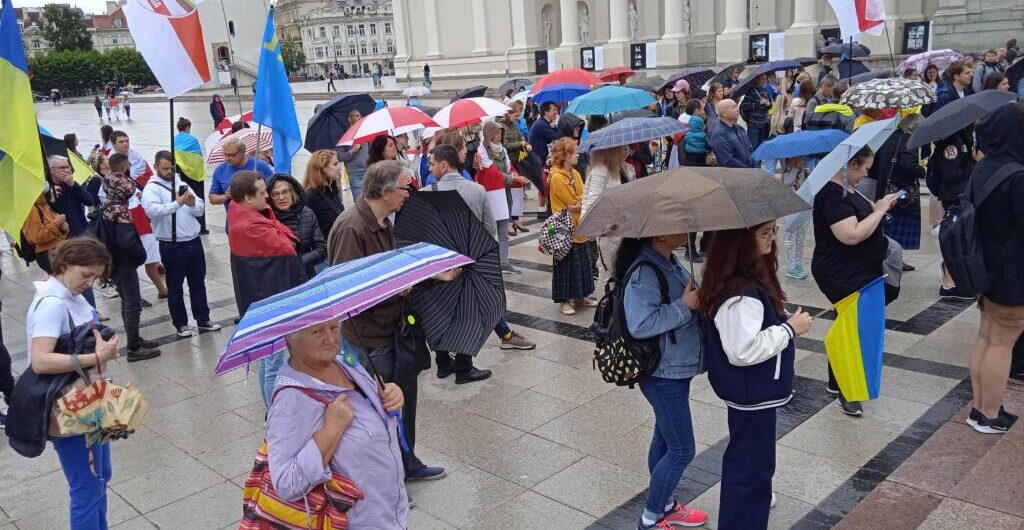 Розповідаючи про мурал на «Домі Москви», Аркадіюс Вінокурас (організатор і незмінний ведучий мітингів біля пам’ятника Гедеміну) зауважив: «Є ще один вид боротьби – мистецтво». А слово? Чи має воно хоч якусь силу? На мітингах у центрі Вільнюса звучить багато слів на підтримку України. Іноді в них нема нічого нового: «Тримайтеся! Будьте єдині! Ми з Україною!» А іноді виступи містять важливу інформацію. Думаю, так чи інакше, «слова, слова, слова» несуть потужний енергетичний заряд. Та й сам факт здається мені значущим: 1 серпня люди зібралися біля пам’ятника Гедеміну вже у 17-й раз. 17 понеділків поспіль – незважаючи на дощ чи спеку – о 18.30 сюди приходять люди. Скільки ще буде таких мітингів? «До нашої Перемоги!» – говорять вони.