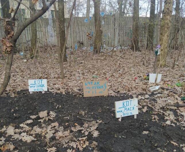 “Возле нашего дома была раньше лесопосадка. Но там появилось кладбище домашних животных. Было небольшое, но с каждым годом всё увеличивалось и выросло, в конце концов, таким, что съело почти всю посадку. Остались лишь засохшие деревья и кое-какие дохлые кустарники.”, – пишет автор фото.