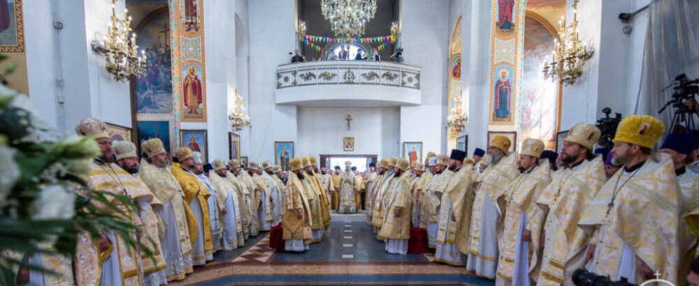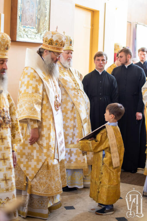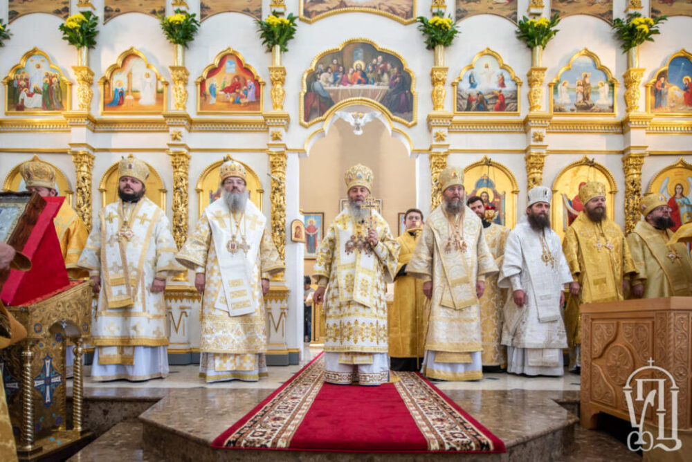 За литургией Предстоятелю сослужили 13 иерархов: управляющий делами УПЦ митрополит Бориспольский и Броварской Антоний, митрополит Запорожский и Мелитопольский Лука, митрополит Святогорский Арсений, митрополит Изюмский и Купянский Елисей, архиепископ Городницкий Александр, архиепископ Путивльский Антоний, архиепископ Бердянский и Приморский Ефрем, архиепископ Арцизский Виктор, епископ Барышевский Виктор, епископ Белогородский Сильвестр, епископ Угольский Симеон, епископ Ирпенский Лавр, епископ Бородянский Марк, а также духовенство собора.