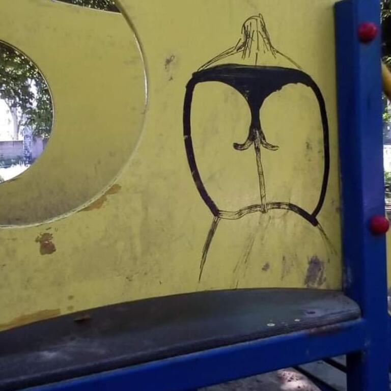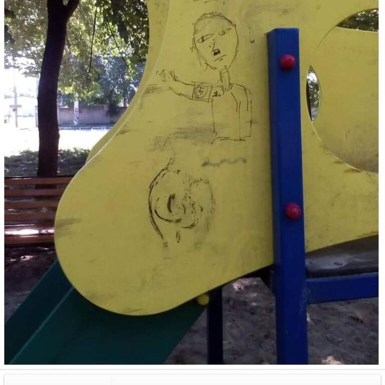 Дети нарисовали лидера немецких нацистов на игровой конструкции в Орехове.