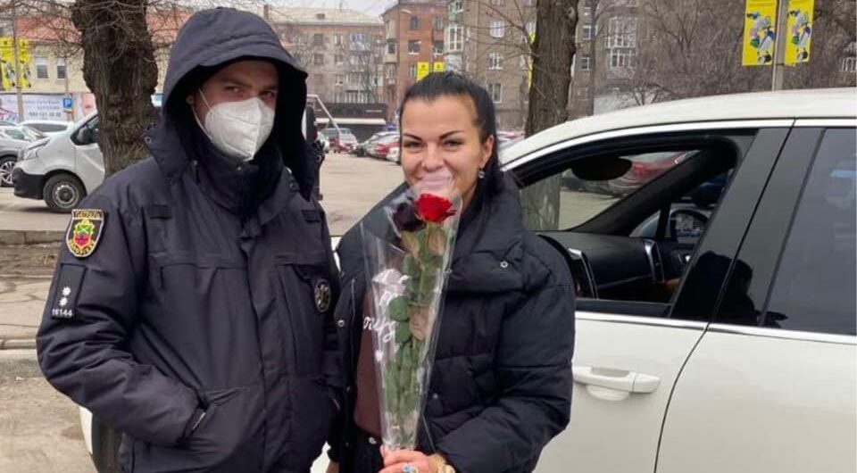 Накануне 8 марта, запорожские патрульные запаслись цветами, которые дарили представительницам прекрасного пола, останавливая их на дороге и поздравляя с наступающим праздником весны.