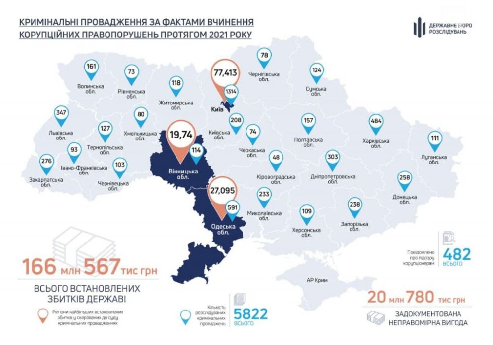 За 8 месяцев текущего года сотрудниками Государственного бюро расследований было зафиксировано по всей территории Украины получение неправомерной выгоды должностными лицами на общую сумму почти 21 млн гривен.