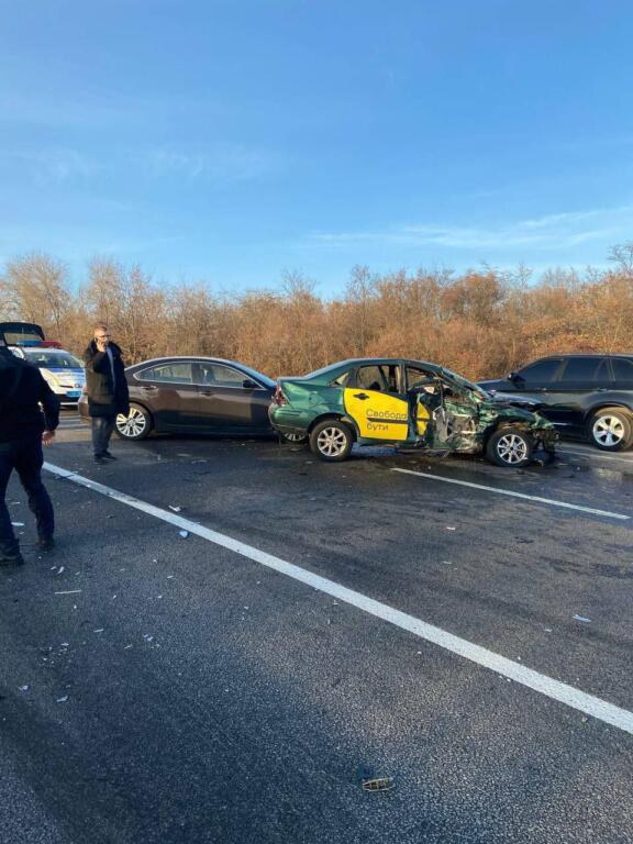 На трассе Харьков-Симферополь возле с. Григорьевка произошло столкновение 3 легковых автомобилей.