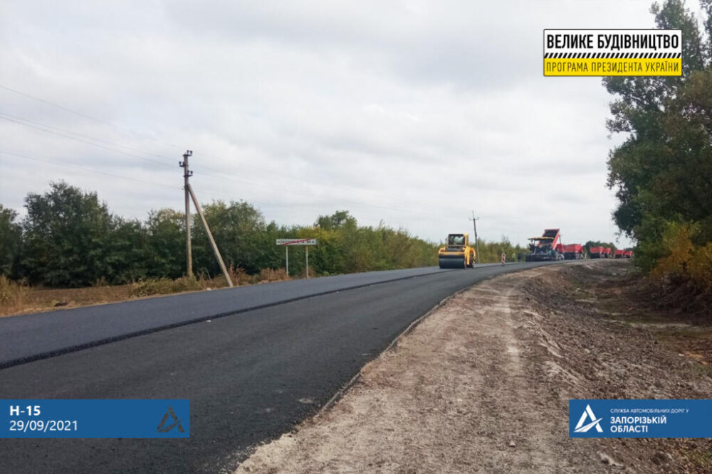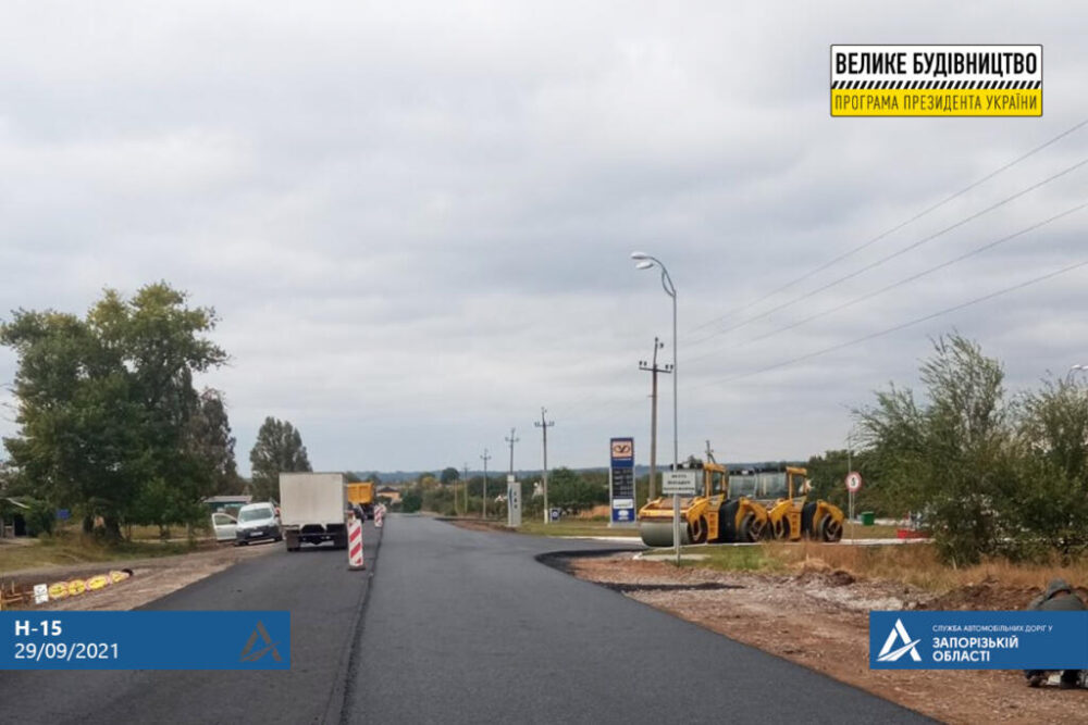 Сейчас подрядчик перешел к устройству верхнего слоя дорожного покрытия. Так, за поселком Новониколаевка в сторону границы с Днепропетровской областью начали укладывать щебеночно-мастичный асфальтобетон. Работы ведутся по левой полосе движения, поэтому на этом участке автодороги временно организовано реверсивное движение.