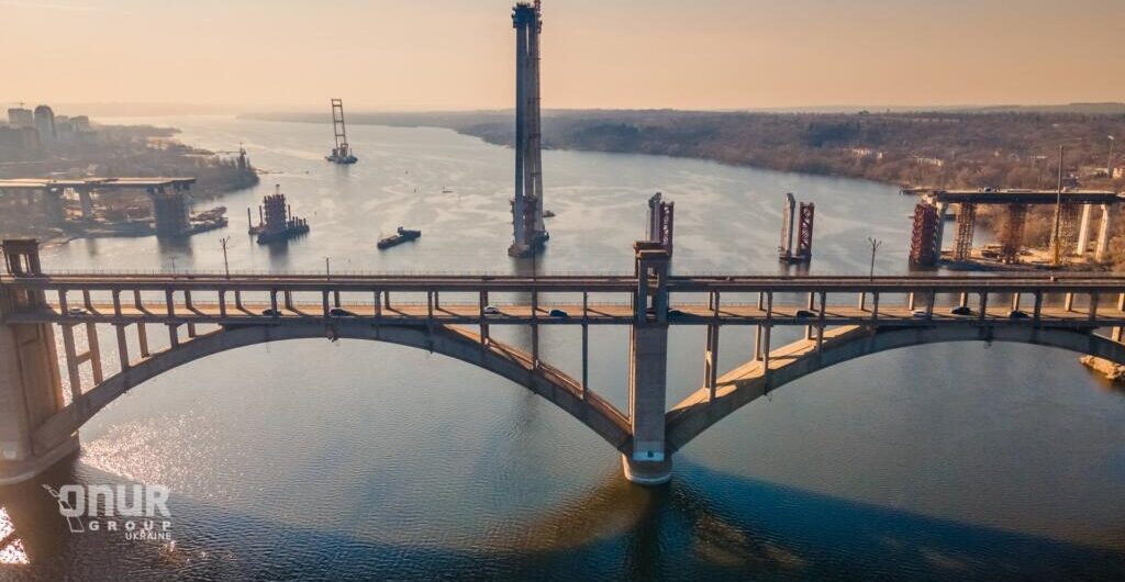В Запорожье на строительстве вантового моста завершают монтаж временных опор, кроме того, идет подготовка к важному этапу работ – монтажу пролетного строения.