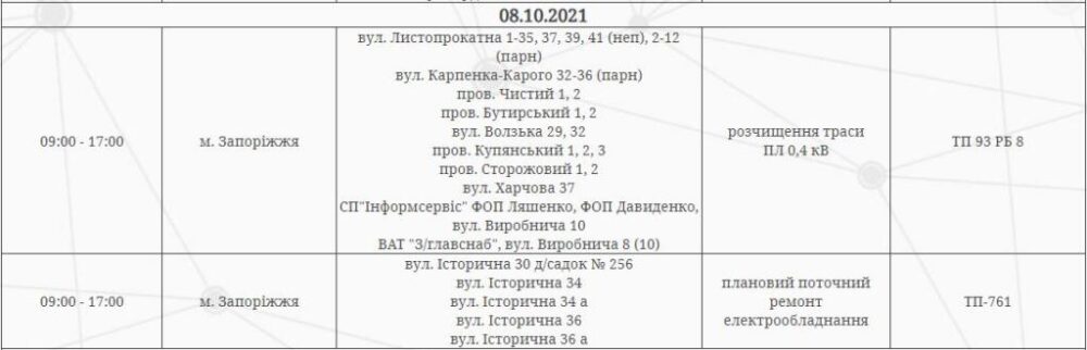 Об отключениях сообщили в Запорожьеоблэнерго. Жителей просят с пониманием отнестись к временным неудобствам. Света не будет по таким адресам: