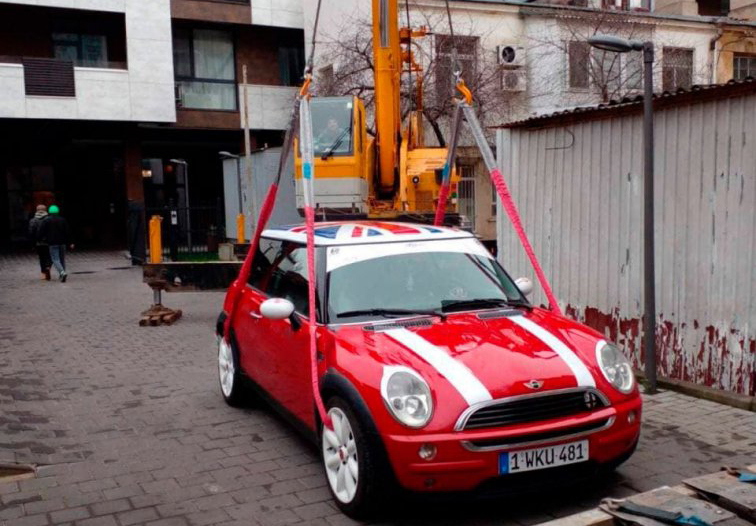 Как рассказали очевидцы события, автомобиль марки Mini Cooper поднимали краном и установили на балкон многоэтажного дома. Об этом сообщают одесские телеграм-каналы Kurs Odessa и Х**вая Одесса.