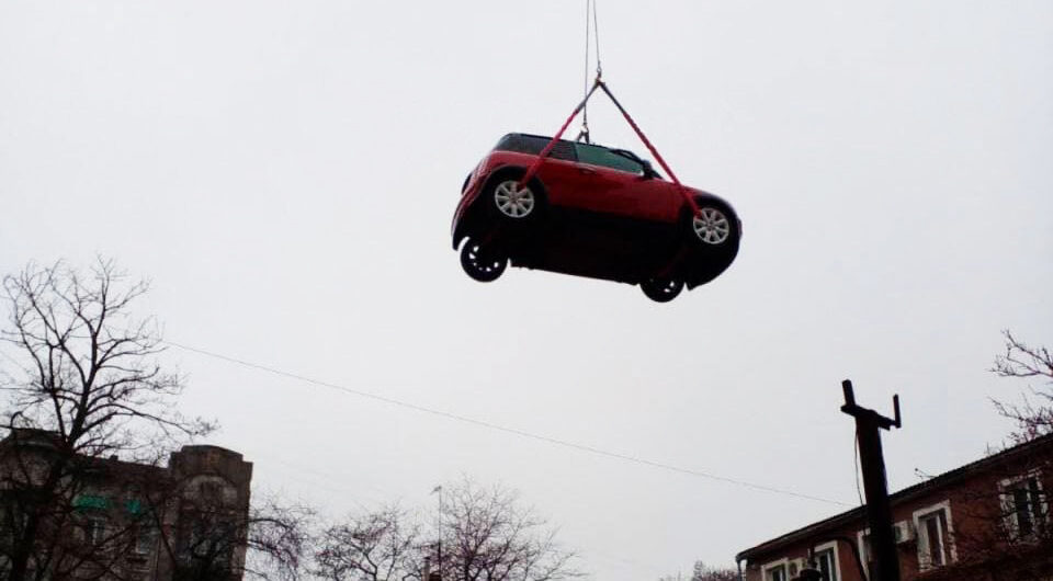 Жители Одессы, 16 декабря, увидели необычную “картину”, как подъемный кран парковал автомобиль на балкон седьмого этажа.