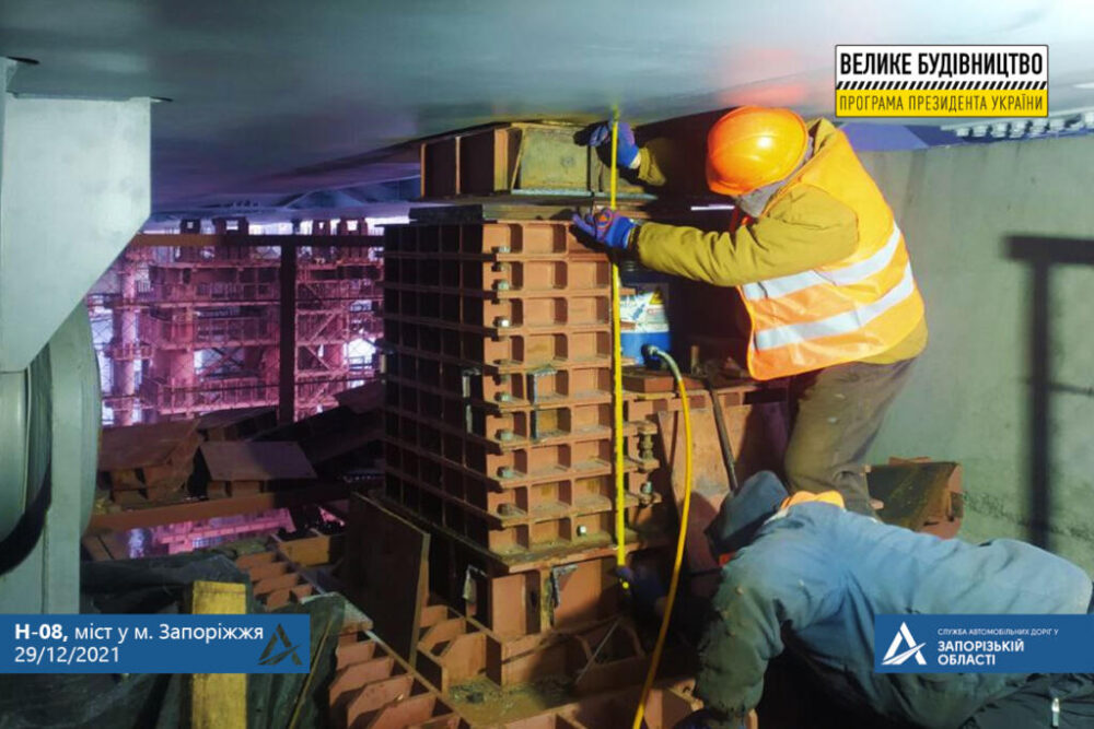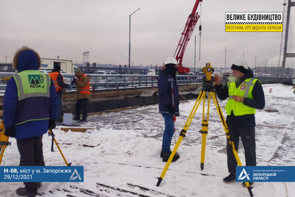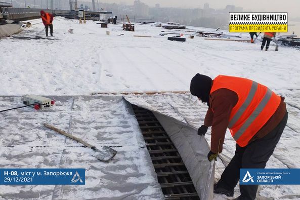В Запорожье в последние дни ухудшилась погода. Но строительные работы на мостах продолжаются.