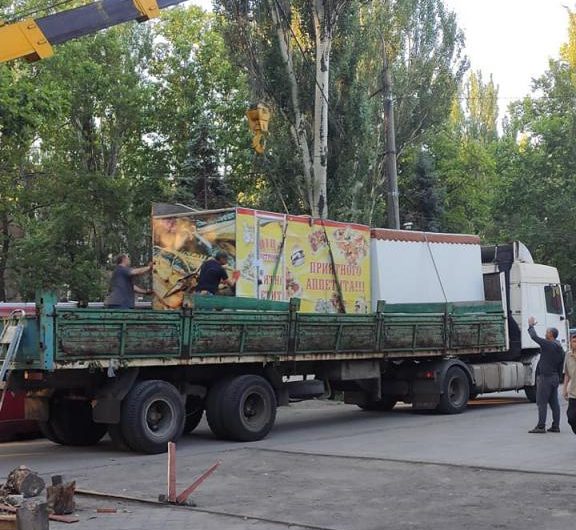 15 незаконных торговых объектов демонтировано за сегодняшнюю ночь с проспекта Металлургов согласно принятых решений исполнительного комитета городского совета.