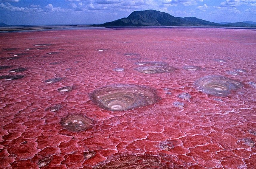 Вода из озера Натрон буквально разъедает кожу, как только вы к ней прикоснетесь. Если хоть немного искупнуться здесь – кожа покроется жуткими волдырями и ожогами. Красивая «корочка» состоит из чрезвычайно агрессивного щелочного минерала с pH почти 12! Это почти в два раза выше здорового показателя для человека. Мелкие животные, которые ненароком спускаются к воде, редко выживают даже после небольшого контакта с водой.
