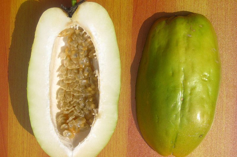 Речь идет о древовидной лиане рода пассифлора. Другие названия «большая гранадила», «гренадина», «пассифлора четырехгранная». О необычном “урожае” рассказала на своей странице в Фейсбук Татьяна Кузьмук.