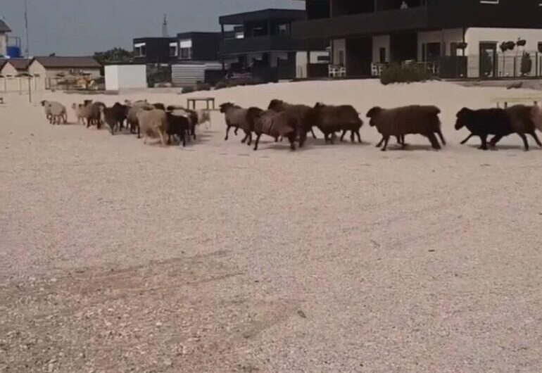 Стадо из нескольких десятков барашек промчалось по пляжу Азовского моря неподалеку от отеля “La Plage”, который находится в непосредственной близости от Азово-Сивасшского национального природного парка.