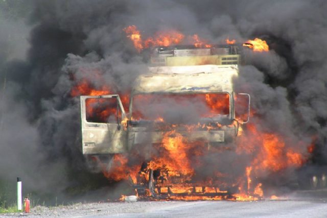 Это ДТП случилось 4 декабря. Возле села Зеленовка загорелся КамАЗ с зерном. Огонь охватил кабину и водитель поспешил покинуть машину.