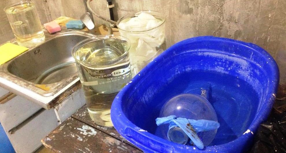 Во время мероприятий полицейские обнаружили и изъяли лабораторное оборудование (мензурки, стеклянные колбы, бутылки, емкости с веществами, электронные весы и прочее), также мобильный телефон, системный блок, ноутбук и денежные средства в сумме 900 евро и около 2500 гривен.