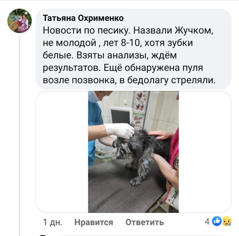 В комментариях женщина рассказала, что врачами была обнаружена пуля возле позвонка. В собаку стреляли.