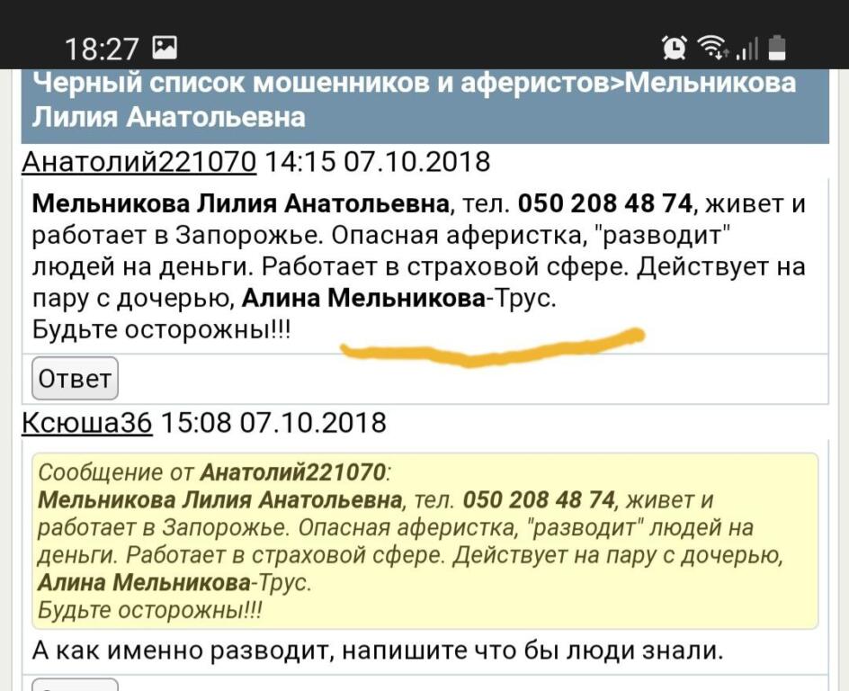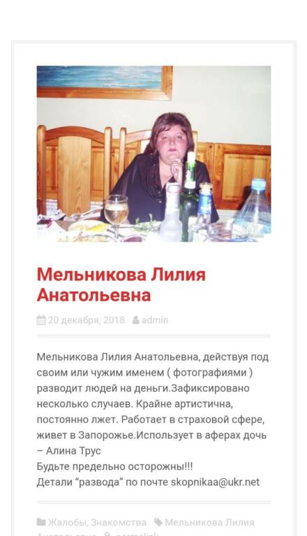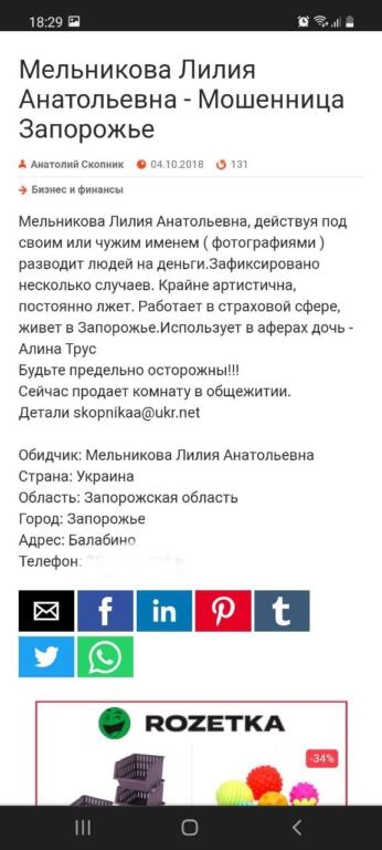 Сообщается, что могла проявить себя в разных сферах, таких как: невыплата заработной платы, задолженность по аренде за жилье, аферы в сфере страхования, обманы на сайтах знакомств и т.д.)