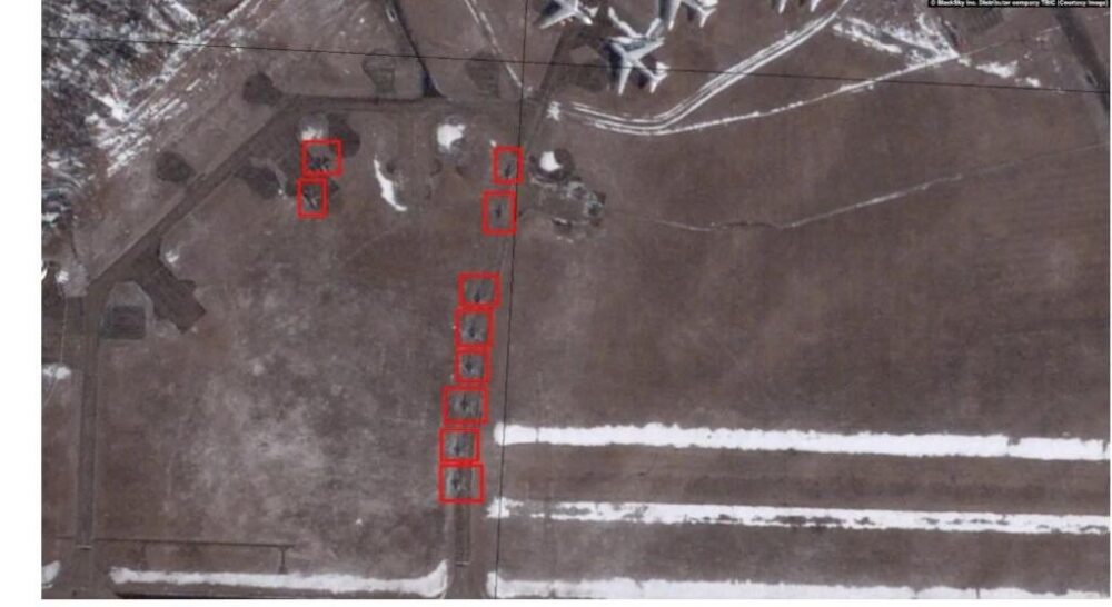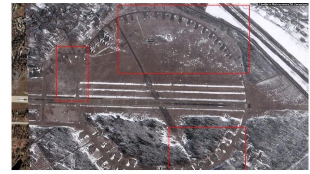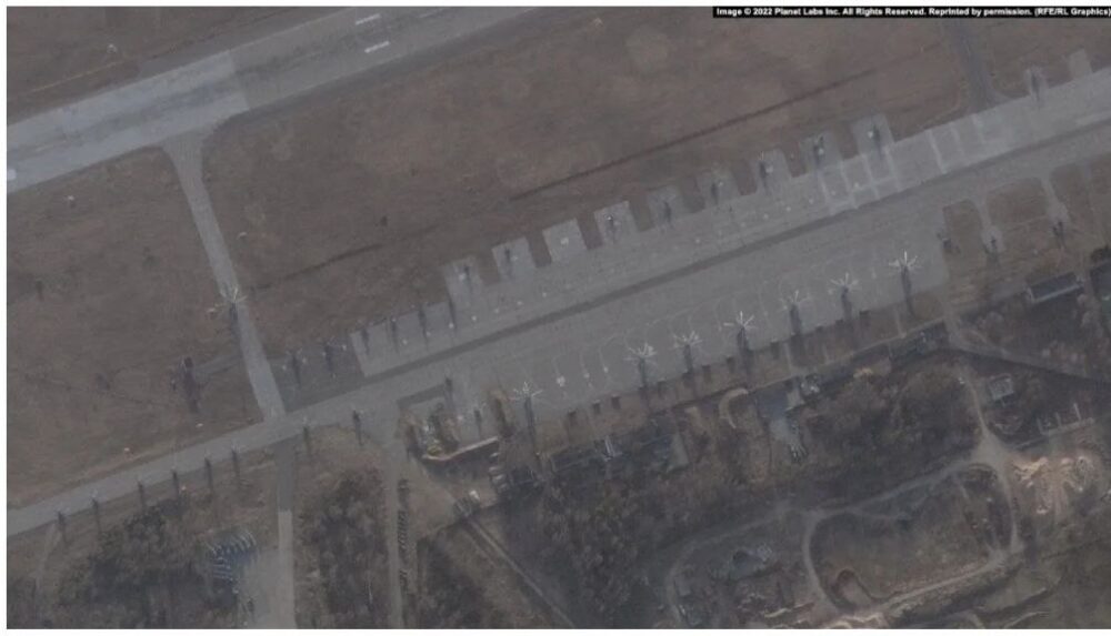 Відомо, що зараз у Сіщі базуються військові гелікоптери, винищувачі, літаки АН-124 та ІЛ-76 – це видно на супутниковому знімку за 6 квітня.