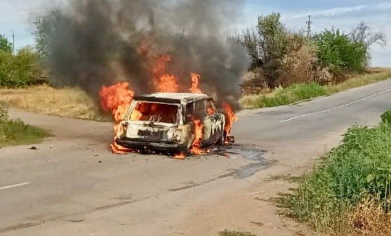 Як повідомляють місцеві джерела, автівка рухалася без супроводу. Після влучання дрона автомобіль одразу загорівся. Люди, які перебували в салоні, не змогли врятуватися та загинули на місці.