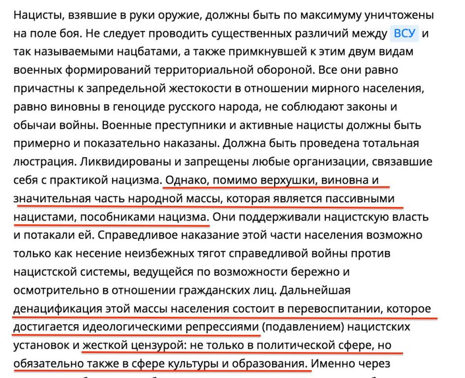 рф уже просто в открытую перешла к риторике нацистских преступников. Целый народ объявляется неправильным, пропагандируется необходимость уничтожения украинцев и украинской государственности.