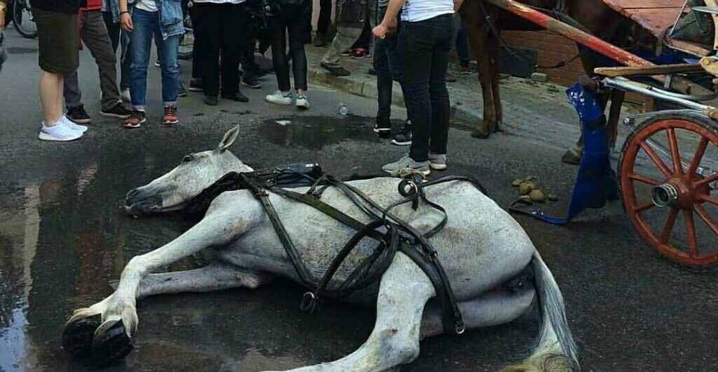 В центре Одессы лошадь упала от усталости. И это не смотря на закон ужесточающий наказание за жестокое обращение с животными.