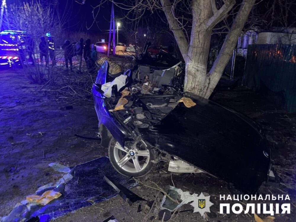 Водитель автомобиля BMW проигнорировал правила ПДД и превысил скорость, в результате чего он не справился с управлением транспортного средства. Автомобиль вылетел за пределы проезжей части и врезался в дерево.