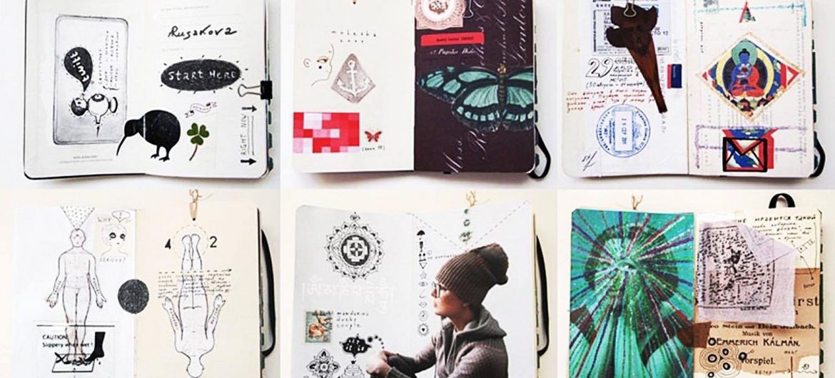 Оказывается, можно не только рисовать, но и вклеивать вырезки из газет и журналов в свою оригинальную и самобытную книгу, сухие листья, описывать сцены и смешивать палитры – тут каждый сам себе хозяин. Смысл в том, чтобы каждый вечер зарисовывать из головы события минувшего дня.