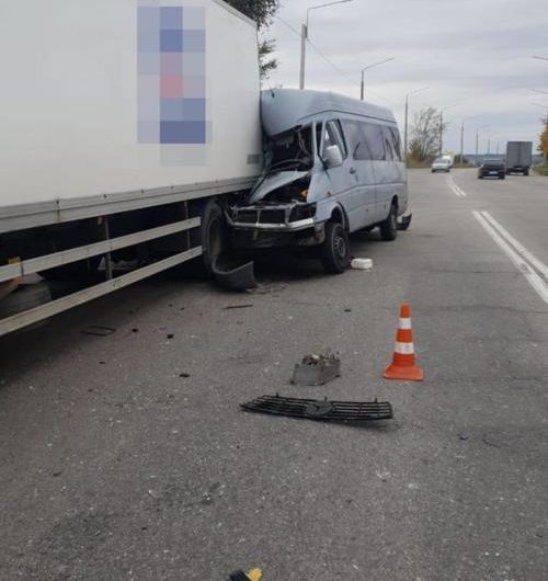 В Запорожье в результате столкновения грузовика и маршрутки, погибла одна женщина, 8 человек госпитализированы.