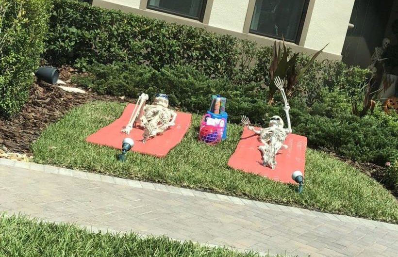 Пользовательница Твиттера Сами Кампаньяно заметила, что у дома по соседству расставили несколько скелетов (не настоящих). Казалось бы — ну поставили и поставили.