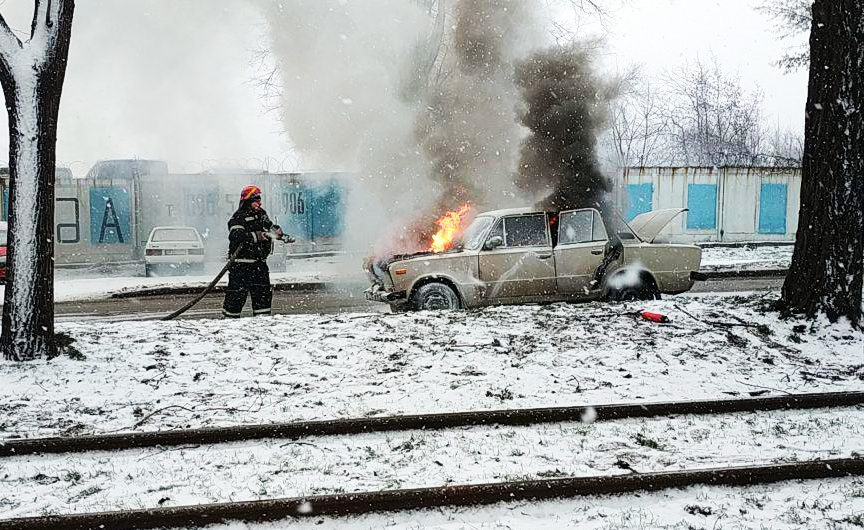 Прибыв на место происшествия, спасатели установили, что горит моторный отсек легкового автомобиля “ВАЗ 2106” на площади 5 кв. м.