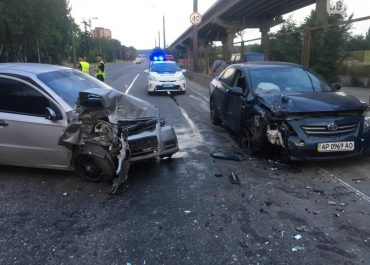Вчера, 16 июня, в Запорожье во второй половине дня на Набережной магистрали дорогу не поделили 2 автомобиля «Шевроле» и «Тойота».