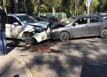 В центре Запорожья произошло тройное ДТП. Аавтомобили “Славута” и Toyota столкнулись лоб в лоб.