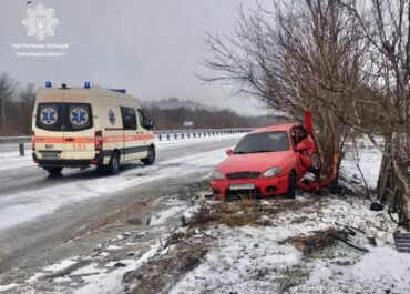 В Запорожье легковушка врезалась в дерево: стало известно о пострадавших в ДТП