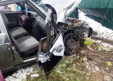 Маршрутка с людьми врезалась в столб, а водитель скрылся с места происшествия.