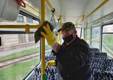 Городской общественный транспорт проходит ежедневную санитарную обработку салона с добавлением спецсредства.