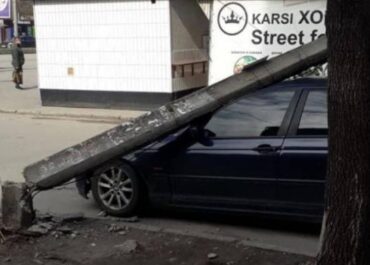 Сегодня, 8 апреля, по улице Сталеваров бетонный столб рухнул на автомобиль, пострадал владелец BMW.