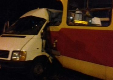 В Шевченковском районе на перекрестке улиц 8 Марта и Героев 55-й бригады трамвай врезался в маршрутное такси.