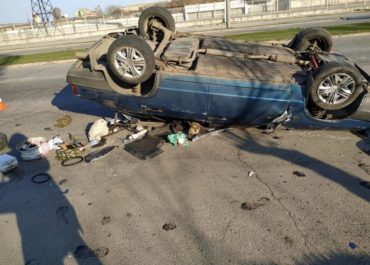 В Запорожье на Набережной магистрали на скорости перевернулась легковушка.